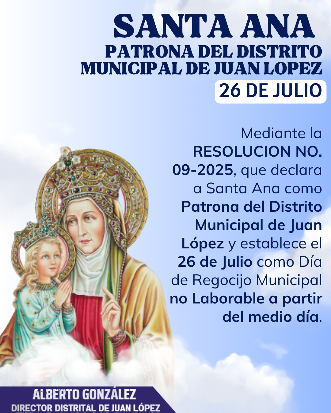 Resolución que Declara a Santa Ana como Patrona del Distrito Municipal de Juan López.
